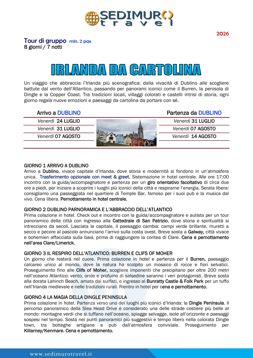 Irlanda da cartolina da Dublino di venerdì 8 giorni